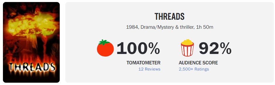 In 1984 a movie called "Threads" was played in Britain about a small tactical nuclear exchange that escalated into full blown nuclear war.