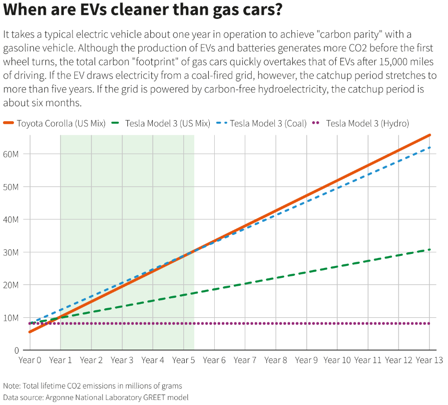 Other studies show carbon parity can occur much earlier, depending on the underlying energy source.